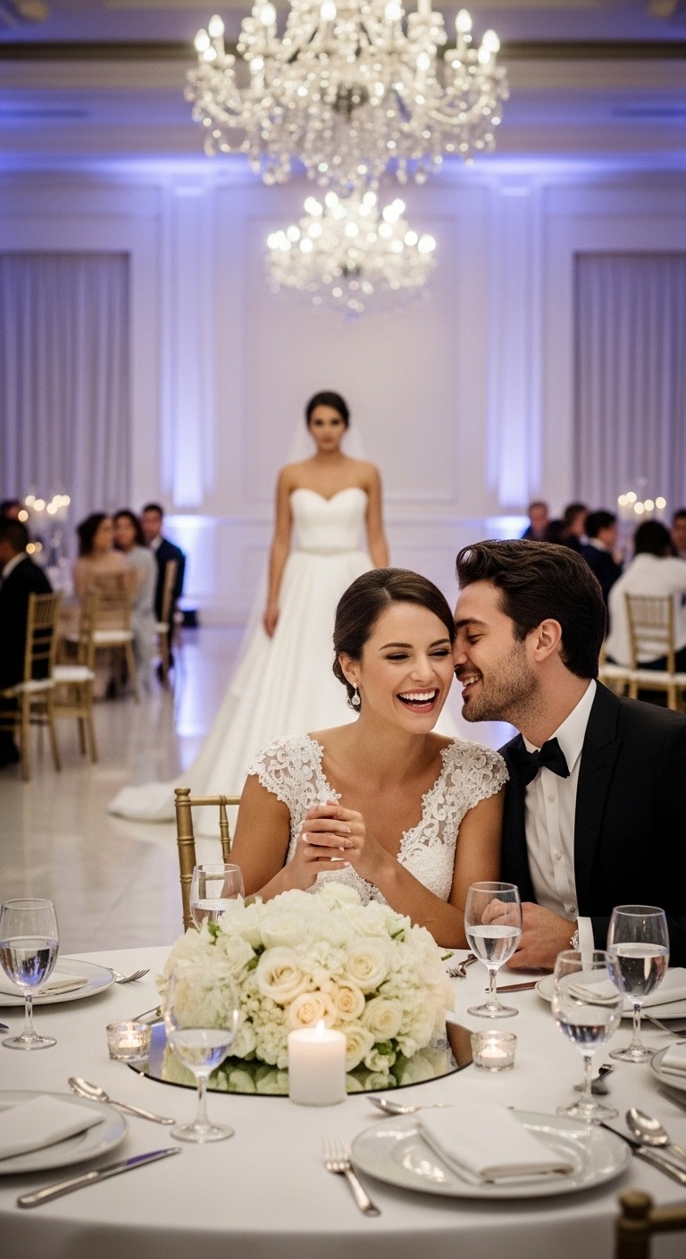 William draped his arm casually along the back of my chair and leaned in to speak to me like we’d known each other for years. Immediately, heads turned. Lydia, mid-conversation with the wedding planner, did a double-take. Her smile faltered, and she started walking toward our table, her train trailing behind her.