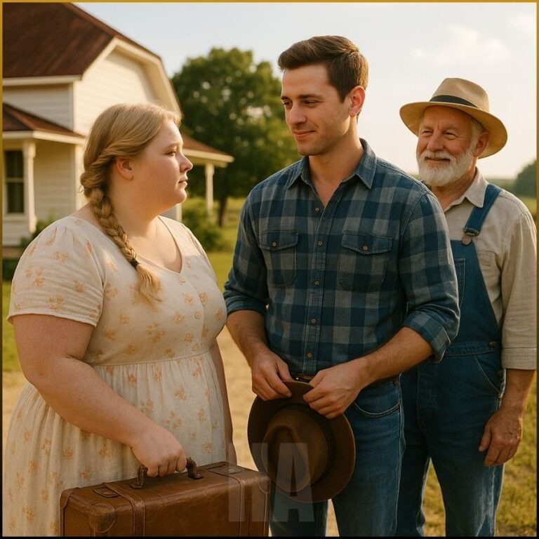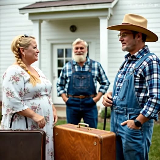 The dust swirled around the worn wheels of the old Chevrolet truck as it pulled up to the modest farmhouse in the late afternoon sun. 24-year-old Margaret sat in the passenger seat, her hands trembling as she clutched her battered leather suitcase. Her long blonde hair was braided simply, and her floral dress, though clean and carefully mended, showed signs of years of wear.