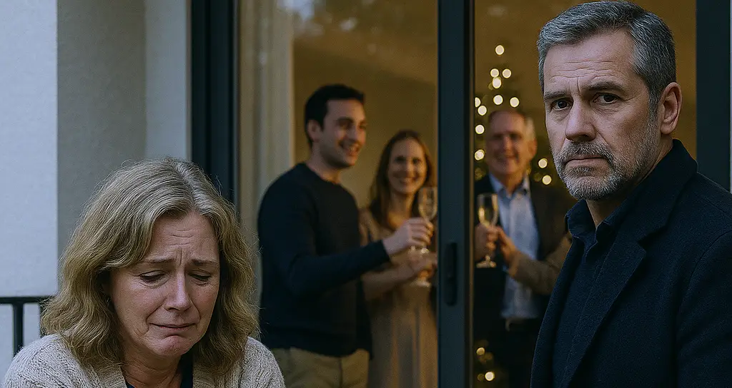 I returned from my trip without telling them. I wanted to surprise them for Christmas. The house was lit up. I could hear laughter coming from the living room. I left my suitcase by the door and walked slowly. On the balcony, my wife was crying silently, looking at the tree lights. Inside, my son was laughing with his in-laws, making a toast as if nothing was missing. Nobody noticed I was back. I just stood there, watching, and I understood everything without hearing a single word.