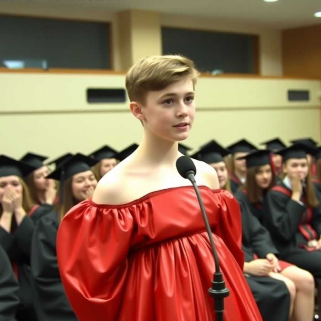 I raised my son alone from the day he was born. In the weeks leading up to graduation, he became distant and secretive, disappearing for hours at a time. Then, on graduation night, he walked into the auditorium wearing a puffy red dress. The room erupted in laughter. What he said next silenced everyone.
