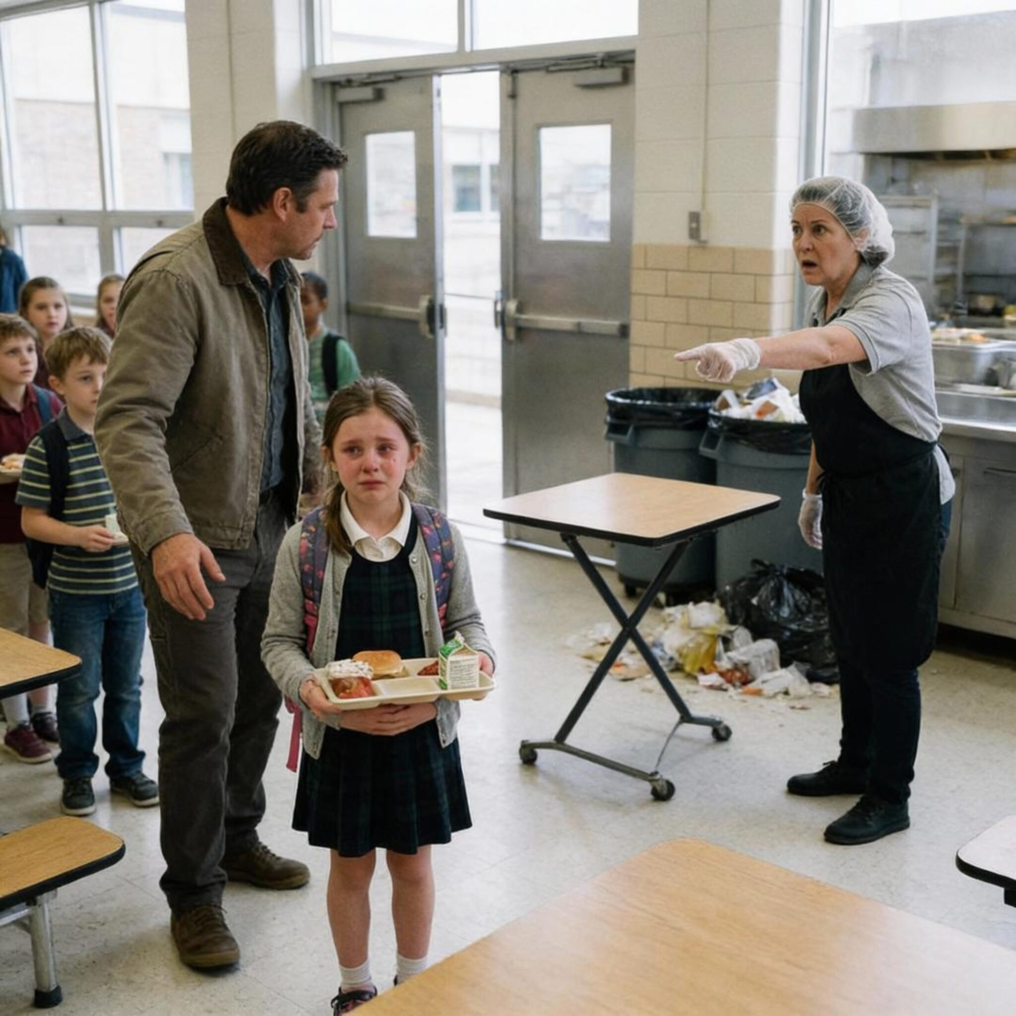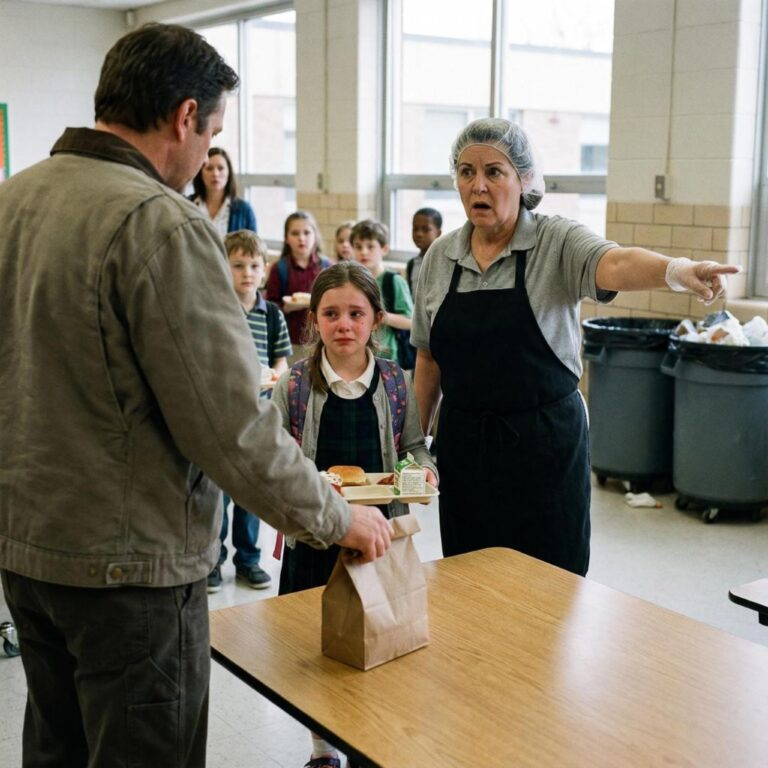 The cafeteria buzzed with noise when I walked in—trays clattering, kids laughing, the echo of voices bouncing off tiled walls. I spotted Emily immediately. She was standing in line, ponytail a little crooked, clutching her lunch tray like it mattered more than anything else. When she saw me, her face lit up in that quiet way she had. Not loud excitement—just a soft smile that always felt like a gift.
