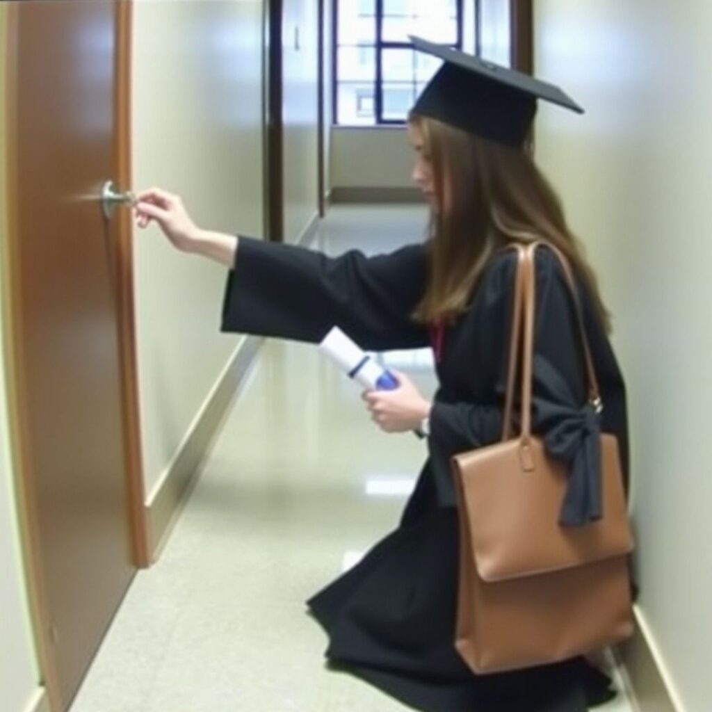 Behind me, slowly, the diploma—still wrapped in plastic—fell to the floor from its own weight.