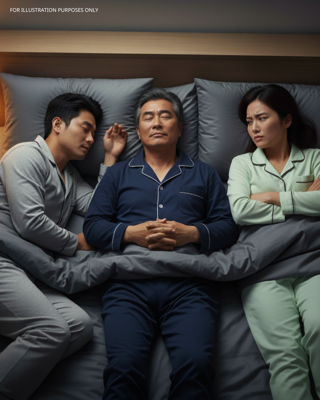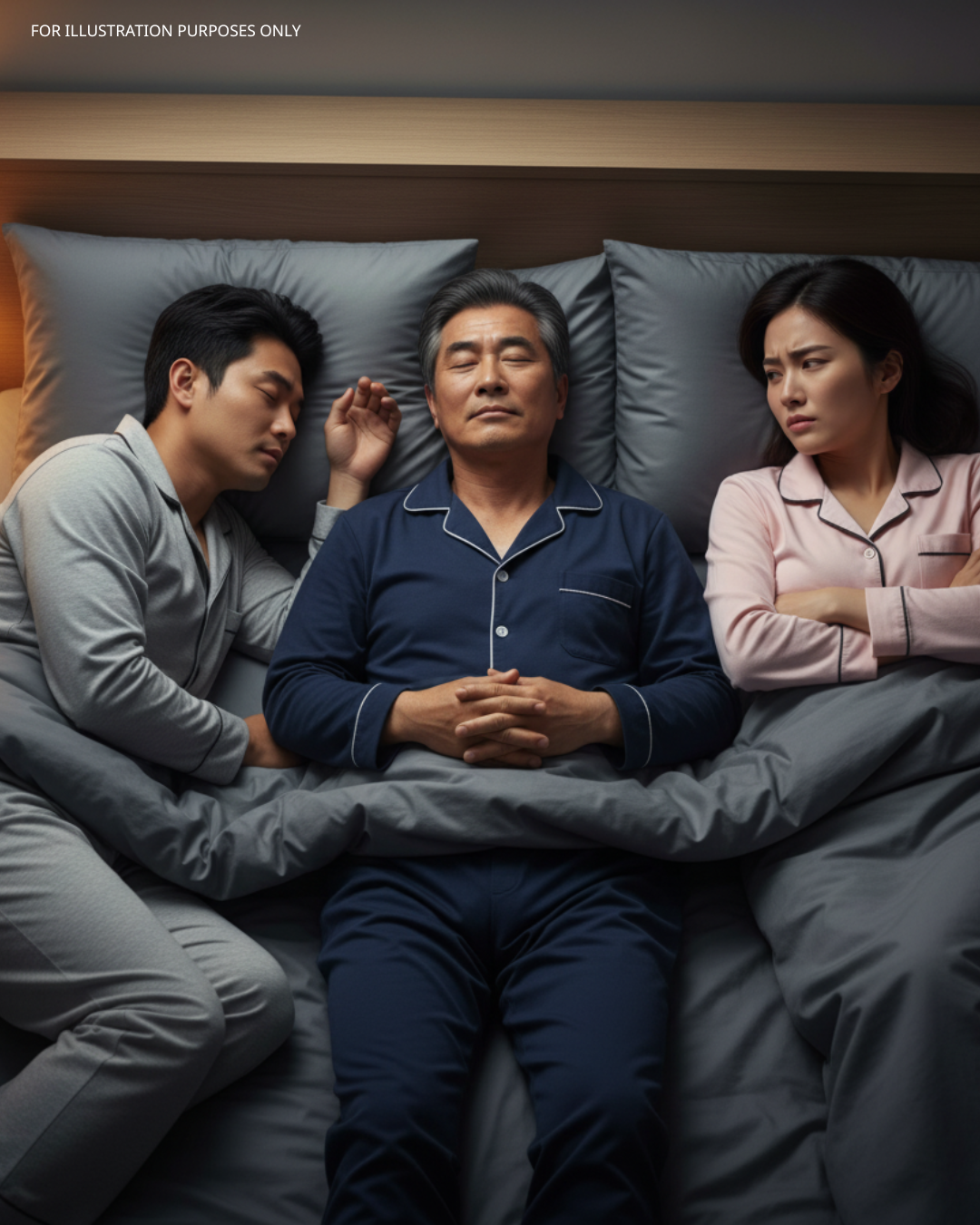 “Dad…” he said gently, “it’s okay. It’s tradition. A lucky elder sleeps between the newlyweds on the first night to bless them with a son. My grandfather did it. It’s normal.”