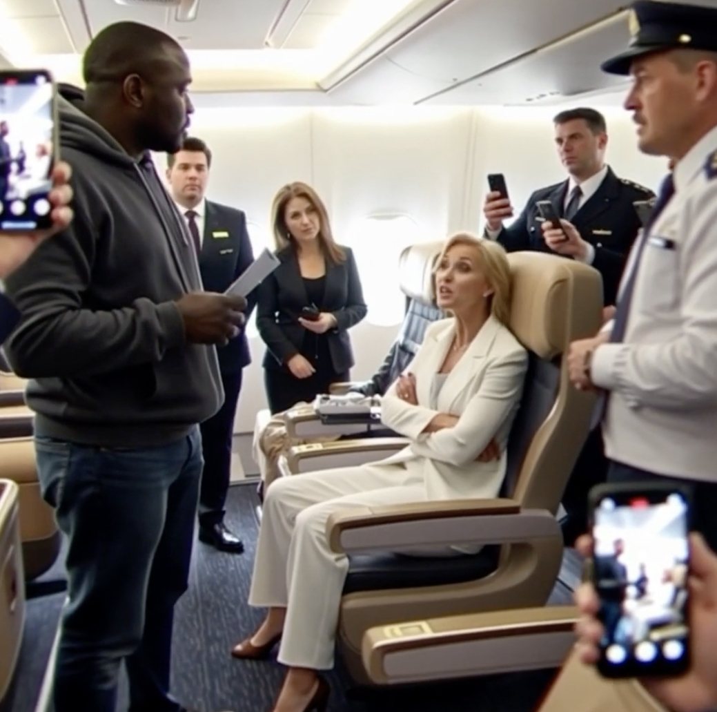 The nearby flight attendant, who had been observing the exchange, stepped forward. “Is there a problem here?” she asked, her tone professional yet slightly apprehensive.