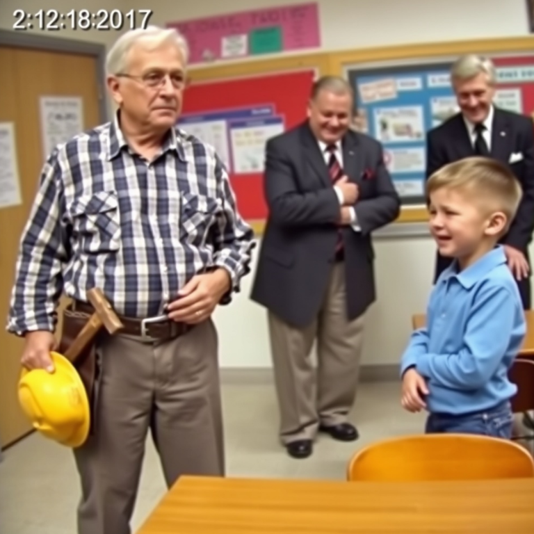 Instead, I walked to the teacher’s desk and set down my old yellow hard hat. The plastic was dulled by decades of sun and rain. I unbuckled my toolbelt — worn leather, stained dark from years of work — and laid it gently on the polished surface.