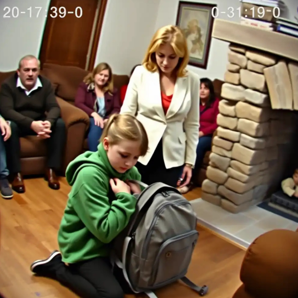 The laughter and conversation faded the moment the girl’s backpack slipped from her shoulder and burst open on the polished floor. Books, loose papers, and a small pencil case scattered in every direction.