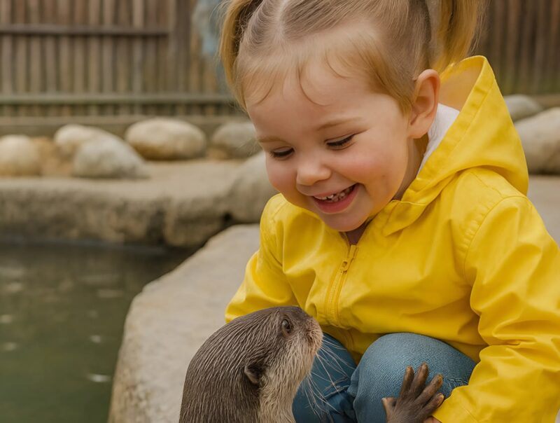 When they reached the otter enclosure, the girl suddenly froze with joy.