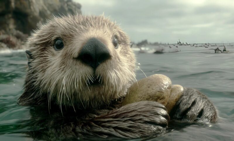 The girl crouched down and began to stroke its wet fur. The otter didn’t run away — on the contrary, it pressed against her knee, touched her hands, and twitched its whiskers as if sniffing her.