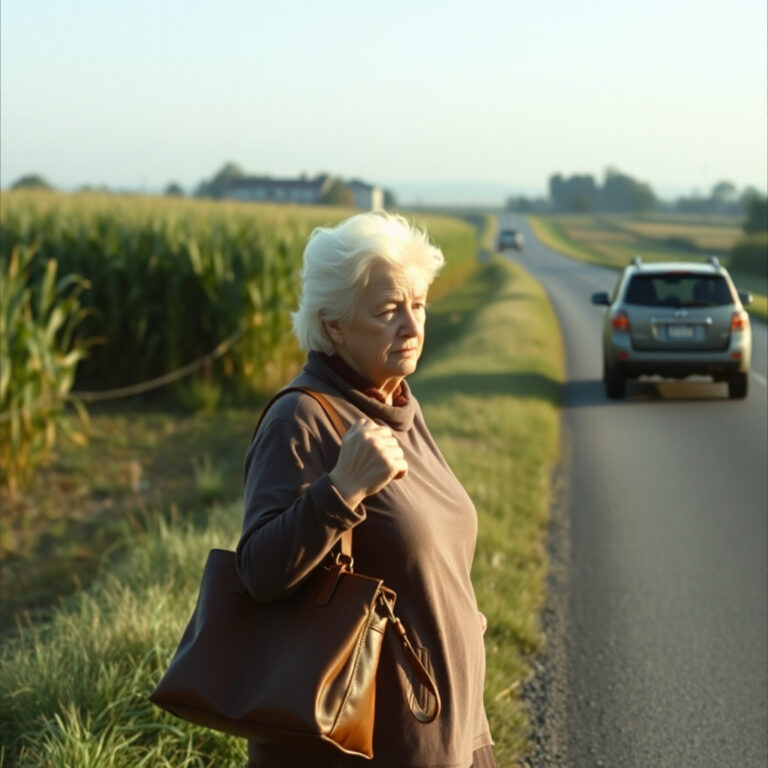 I nodded once, gathered my purse and the small suitcase they’d packed, and stepped out onto the gravel shoulder. The spring air was cool, scented with fresh earth and the promise of rain later. I stood there clutching my bag as Brandon drove away without looking back, Melissa’s pale face visible through the rear window until they crested a hill and disappeared.
