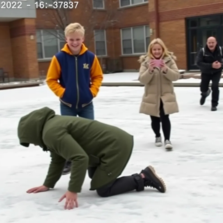 Leo lay on the ice, his breath hitching. The cold seeped instantly through his thin jacket. He looked around at the thirty students surrounding him. Some looked away, uncomfortable but silent. Most were laughing. Phones were pointed at him like weapons.